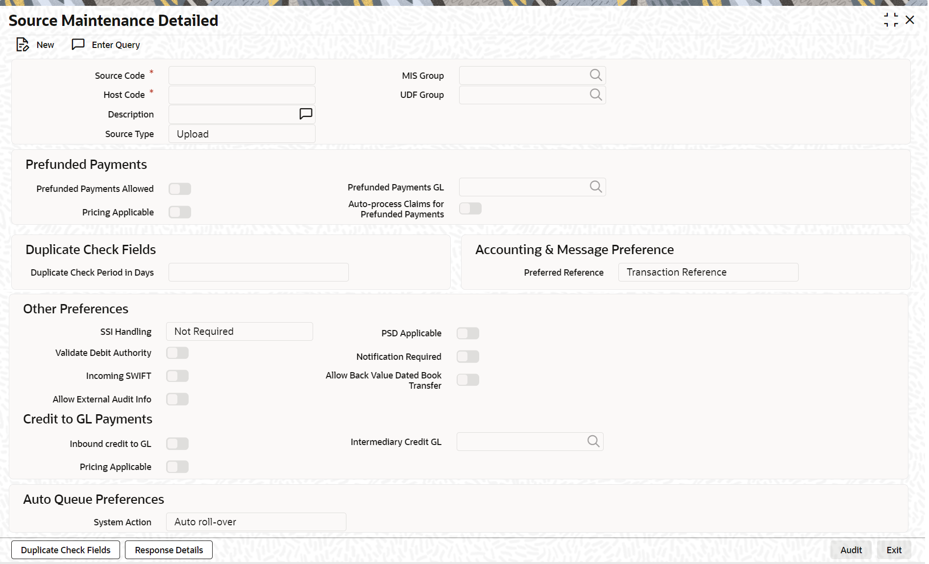 You need to maintain the source details and source network preferences to integrate Oracle Banking Branch with Oracle Banking Payments.