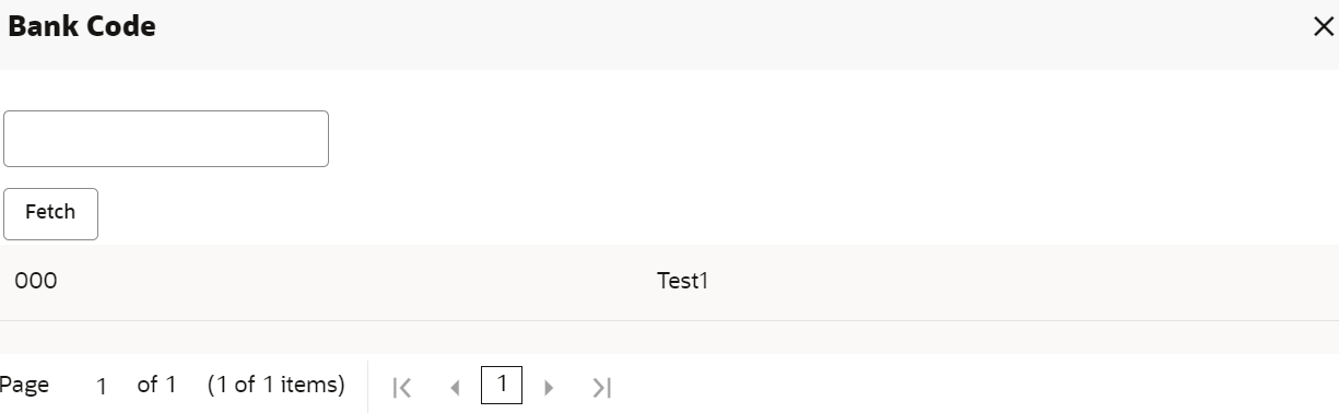 displayed. - Specify the code in the Bank Code field and click Fetch.
