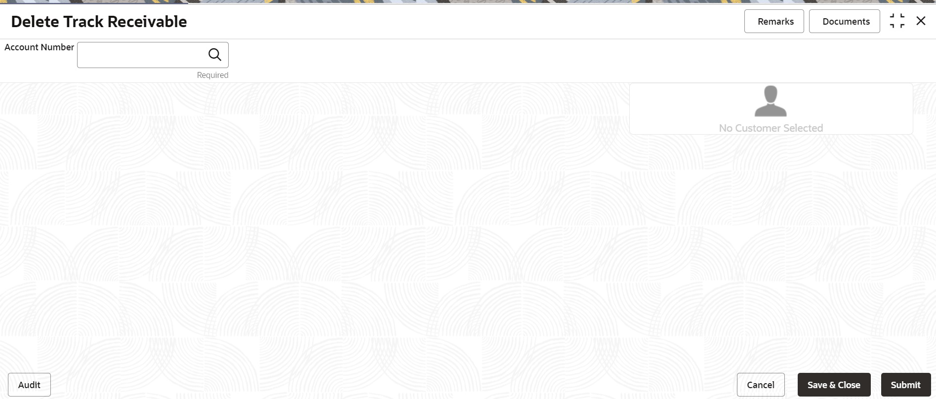 Account Name Account Name is displayed based on the account number selected. Account Currency Account Currency is displayed based on the account number selected. Receivable Due The system displays the total receivable due against the account. Receivable Available The system displays the total amount tracked to settle the receivable due amount. Deleting Amount The system displays the total amount selected for delete. When the user selects the record to delete, the system updates the deleting amount. Delete All Users can enable the Delete All toggle button to select all records for delete track receivable and vice versa. Booking Date The system displays the date on which the track receivable record is created. Reference Number The system displays the contract reference number of the track receivable record. Product The system displays the Product description of the track receivable record. Component The system displays the component code of the track receivable record. Receivable Due The system displays the receivable due amount for the component. Receivable Available The system displays the amount which is tracked against the receivable due. Delete Users can enable the toggle button to delete the record for delete track receivable. - Click the Submit button to submit the record for