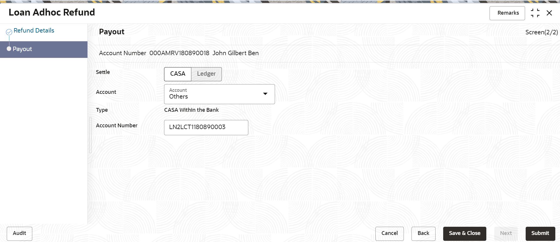 Figure 2-28 Payout - CASA Account in Foreign Currency