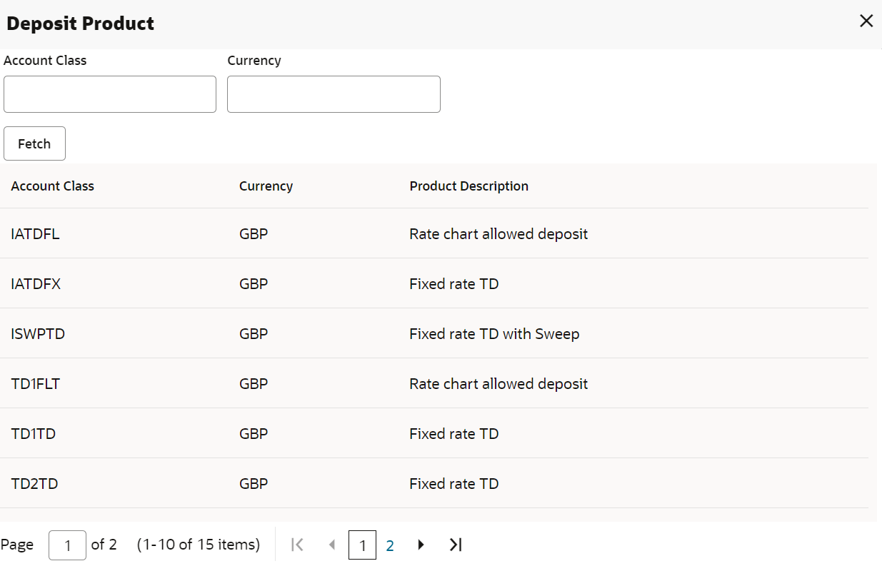 For information Principal, Interest, or Principal & Interest, refer For Component selected as Principal, Interest, or Principal & Interest.Deposit Product