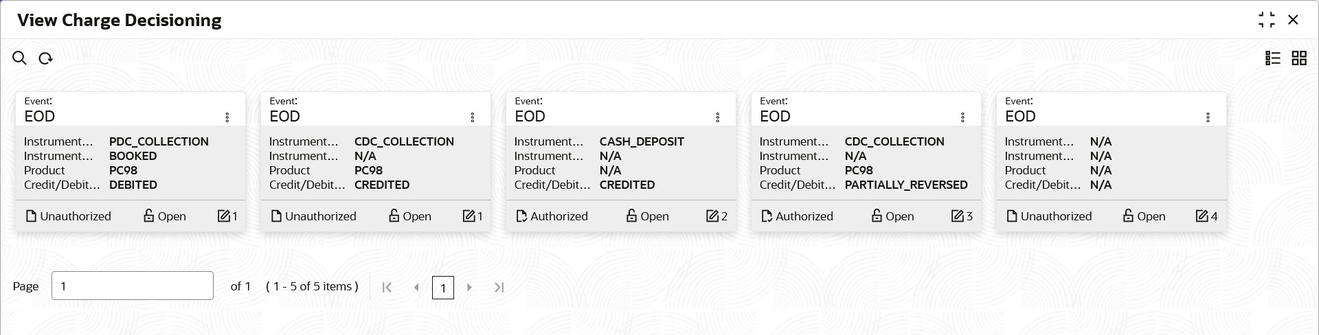 This topic describes the systematic instruction to view, modify, delete, or authorize charge decisioning records that have been created.