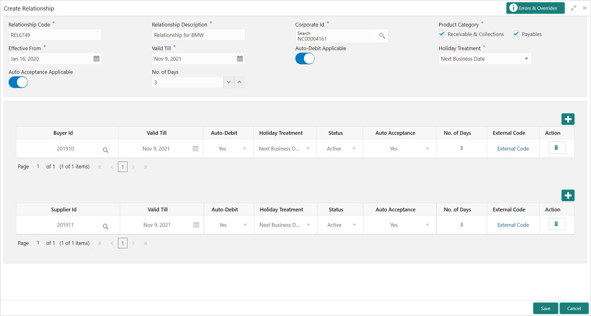 This topic describes the systematic instruction to create relationship between corporates and buyers, or suppliers counterparties.