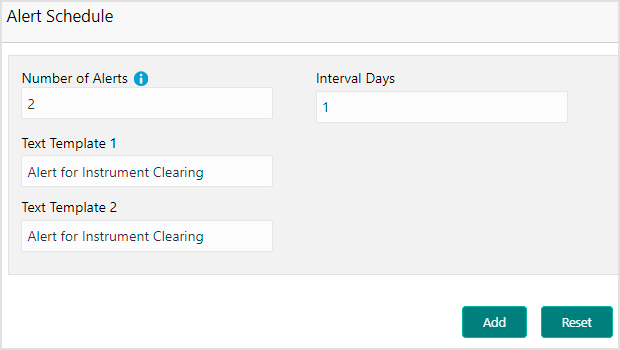 Text Template for SMS Click the search icon and select the text template for an SMS alert. This field is displayed only for Online frequency and SMS delivery mode.