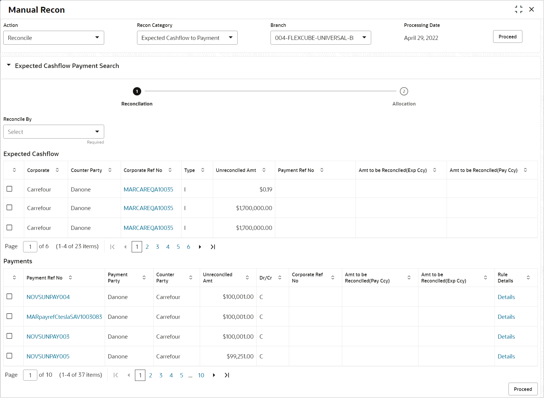 This topic describes the systematic instruction to select multiple records or single record to reconcile.