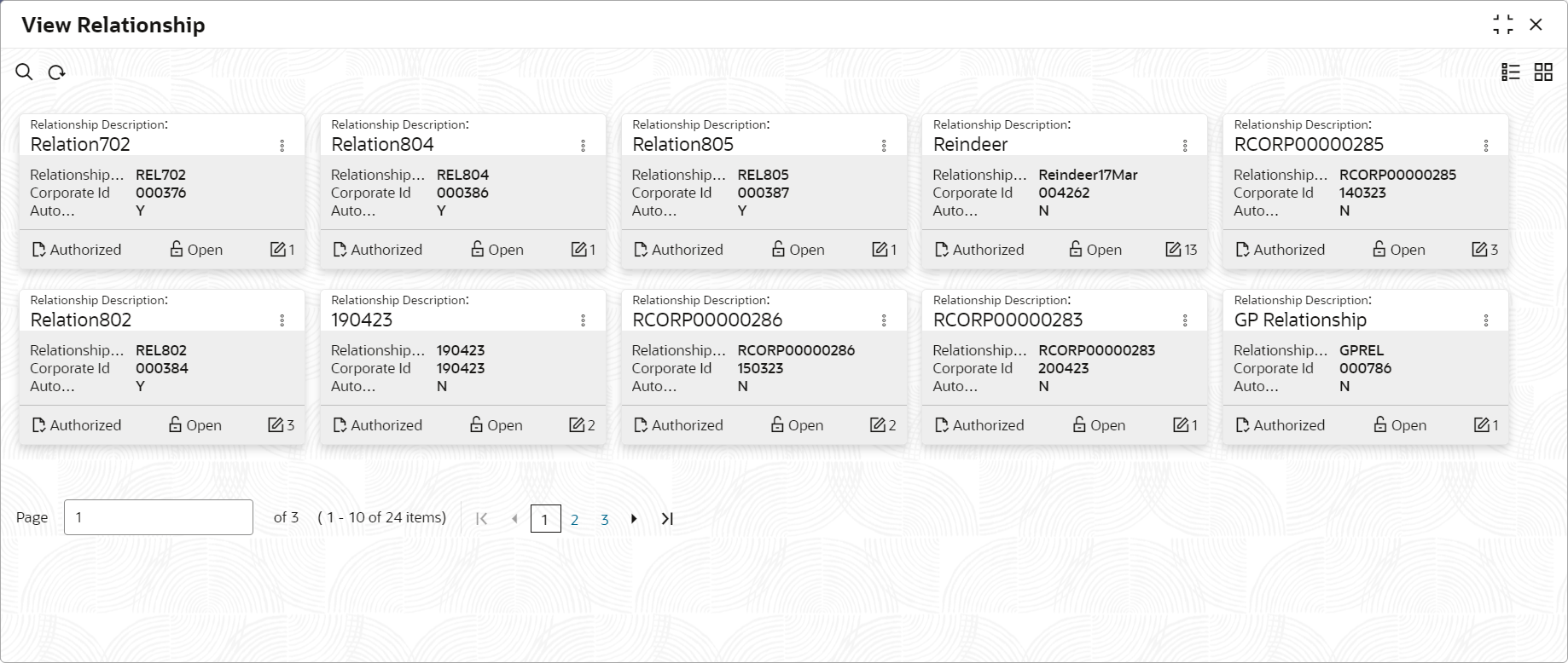 This topic describes the systematic instruction to view, modify, delete, or authorize relationship details.