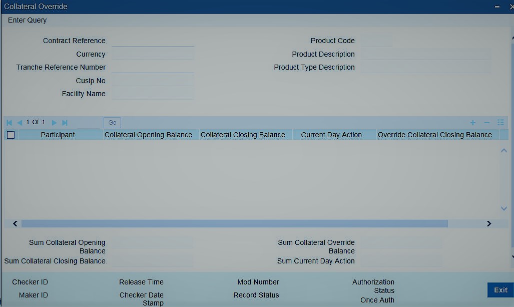 in the Collateral Override screen.