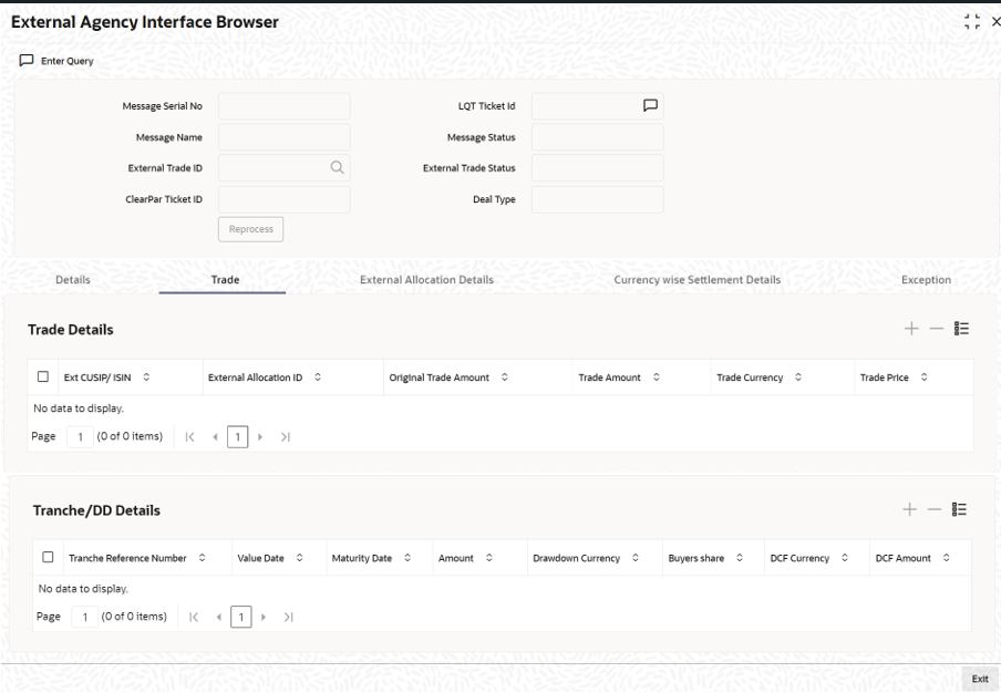 2. From the External Agency Interface Browser screen, click Trade tab.