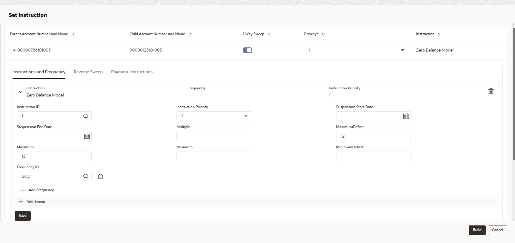 instruction for the account pair.The Set Instructions – Reverse Sweep screen displays.For more information on fields, refer to the field description table.
