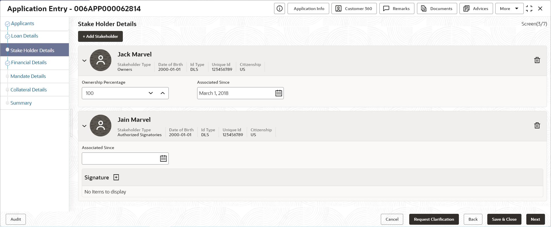 This topic provides the systematic instructions to capture the stake holder details related information for the application.