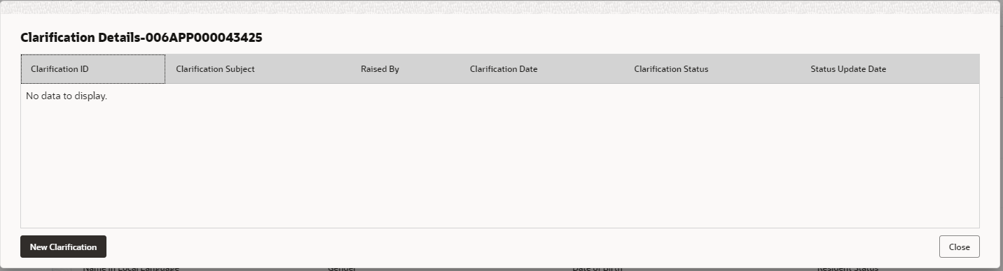 - Click Clarification Details to raise a new customer clarification request or view the existing request. The Clariification screen appears.