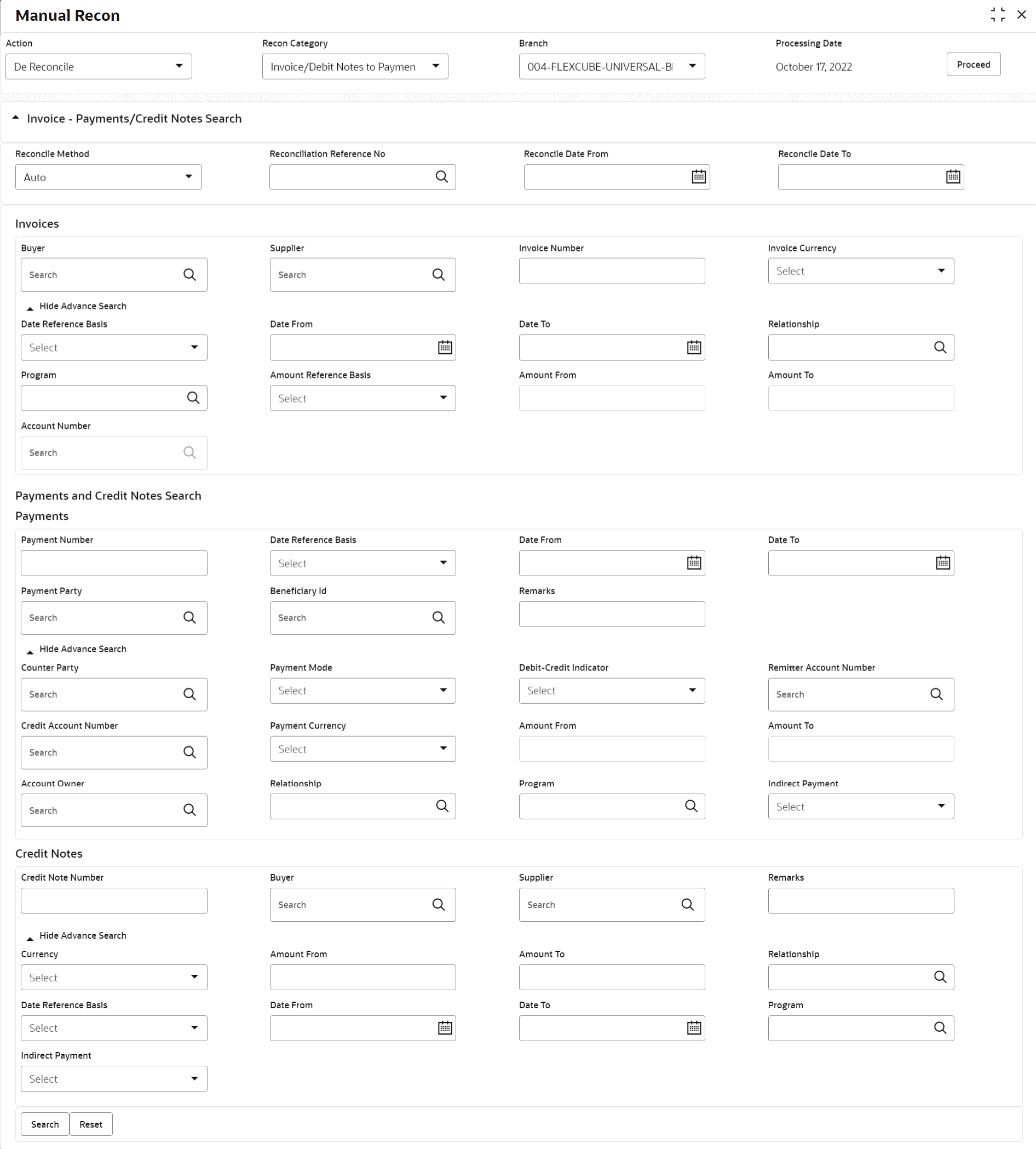 2. In the Action field, select the action to be performed as Reconcile or De Reconcile.