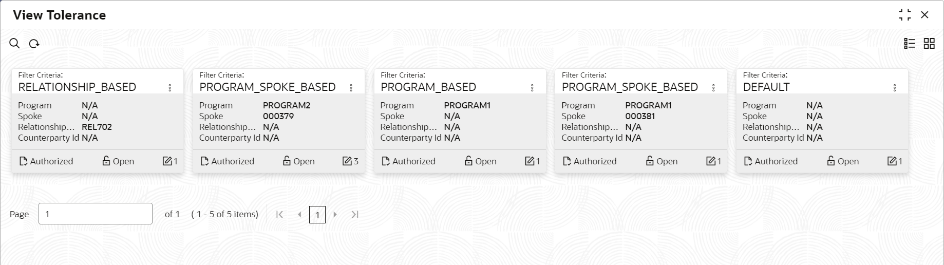 This topic describes the systematic instruction to view, modify, delete, or authorize tolerance details.