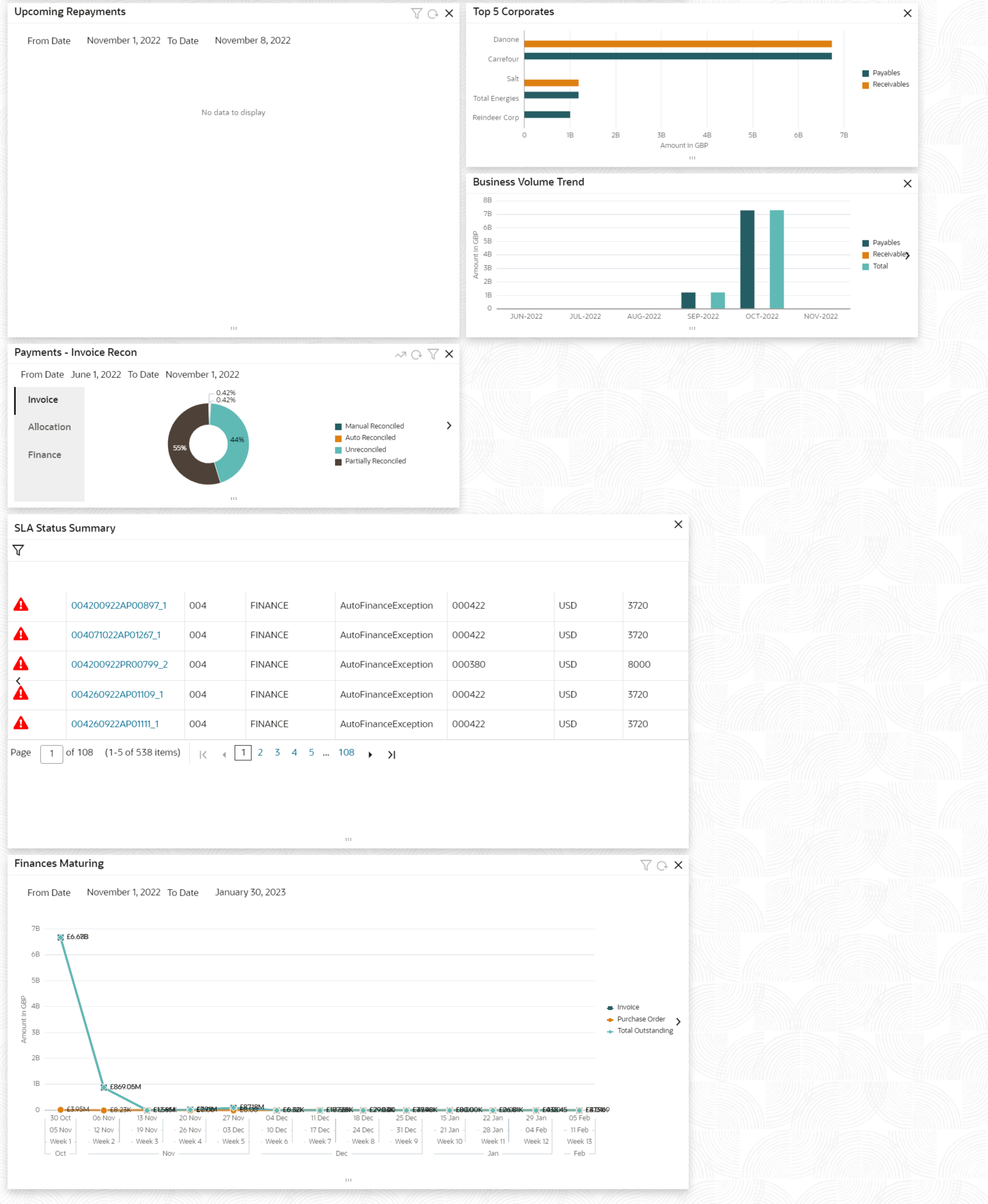 Oracle® Banking Supply Chain Finance Dashboard currently consists of the following portlets for Supply Chain Finance :- Facility Utilization: This widget classifies all
