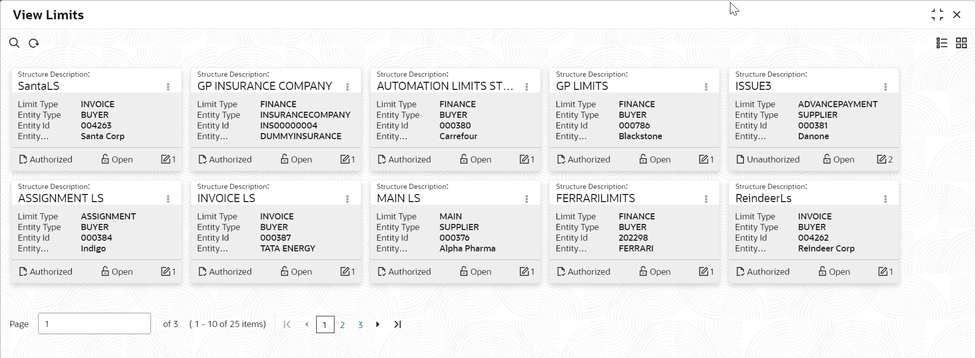 This topic describes the systematic instruction to view, modify, delete, or authorize limits records that have been created.
