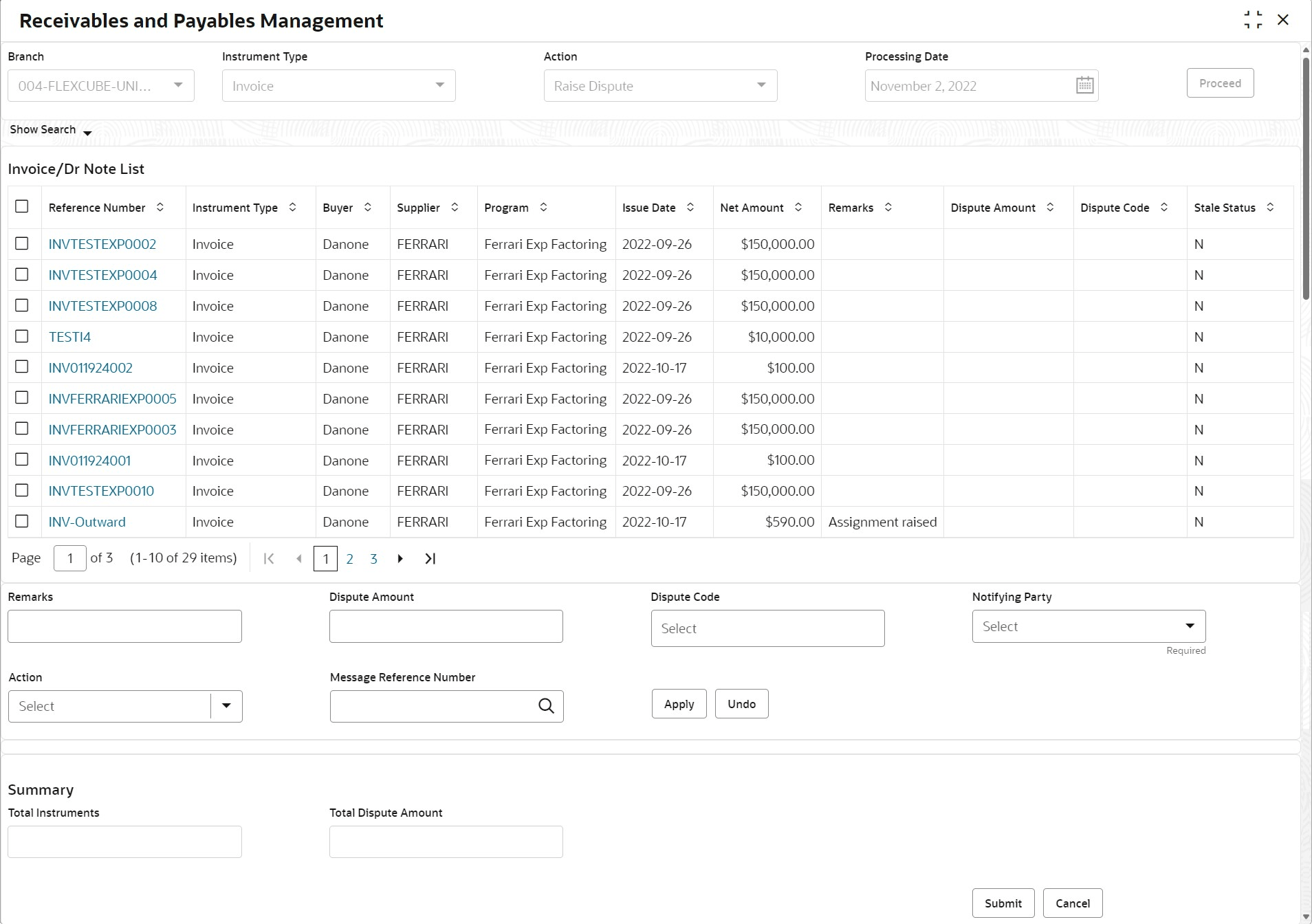 Perform the following steps post searching the invoices/debit notes for the Raise Dispute action: