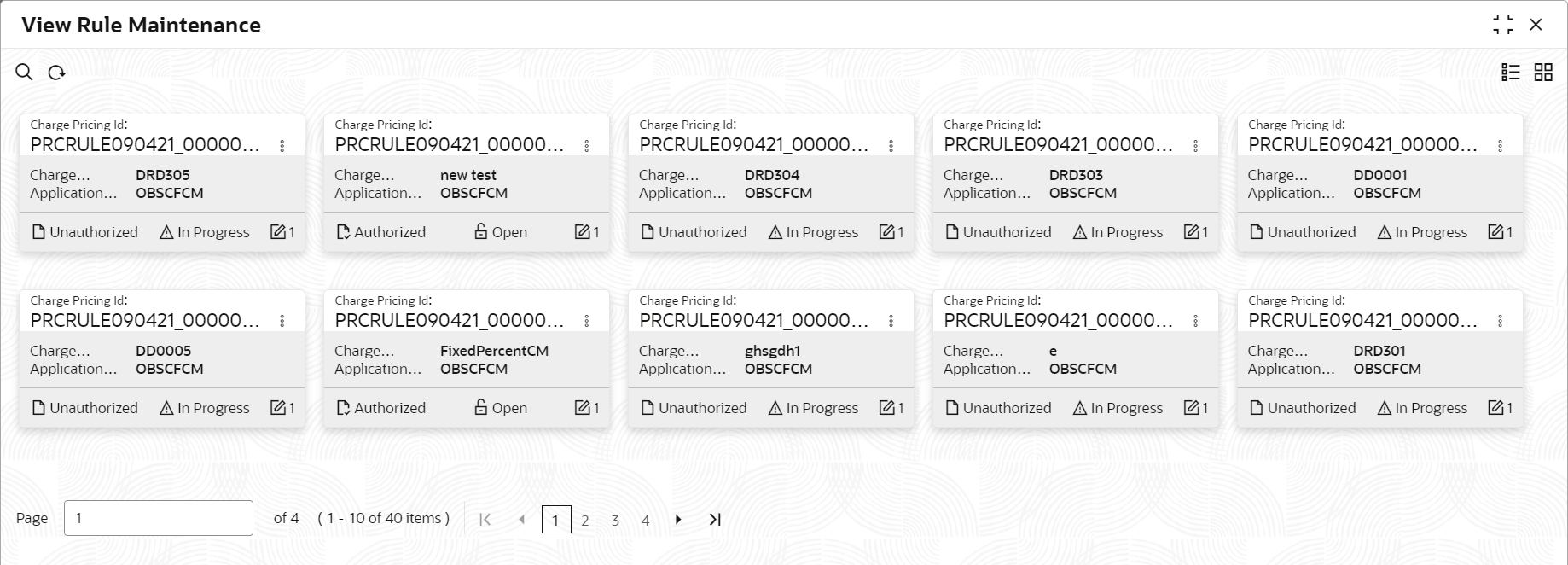 This topic describes the systematic instruction to view, modify, delete, or authorize the charge rules that have been created.