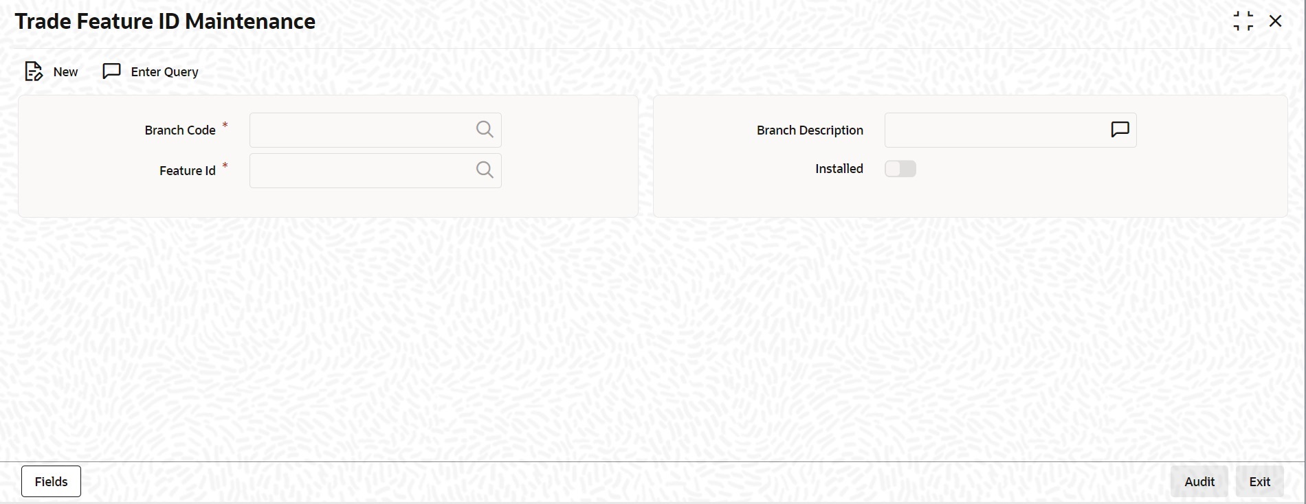 2. On Trade Feature ID Maintenance screen, specify the fields.