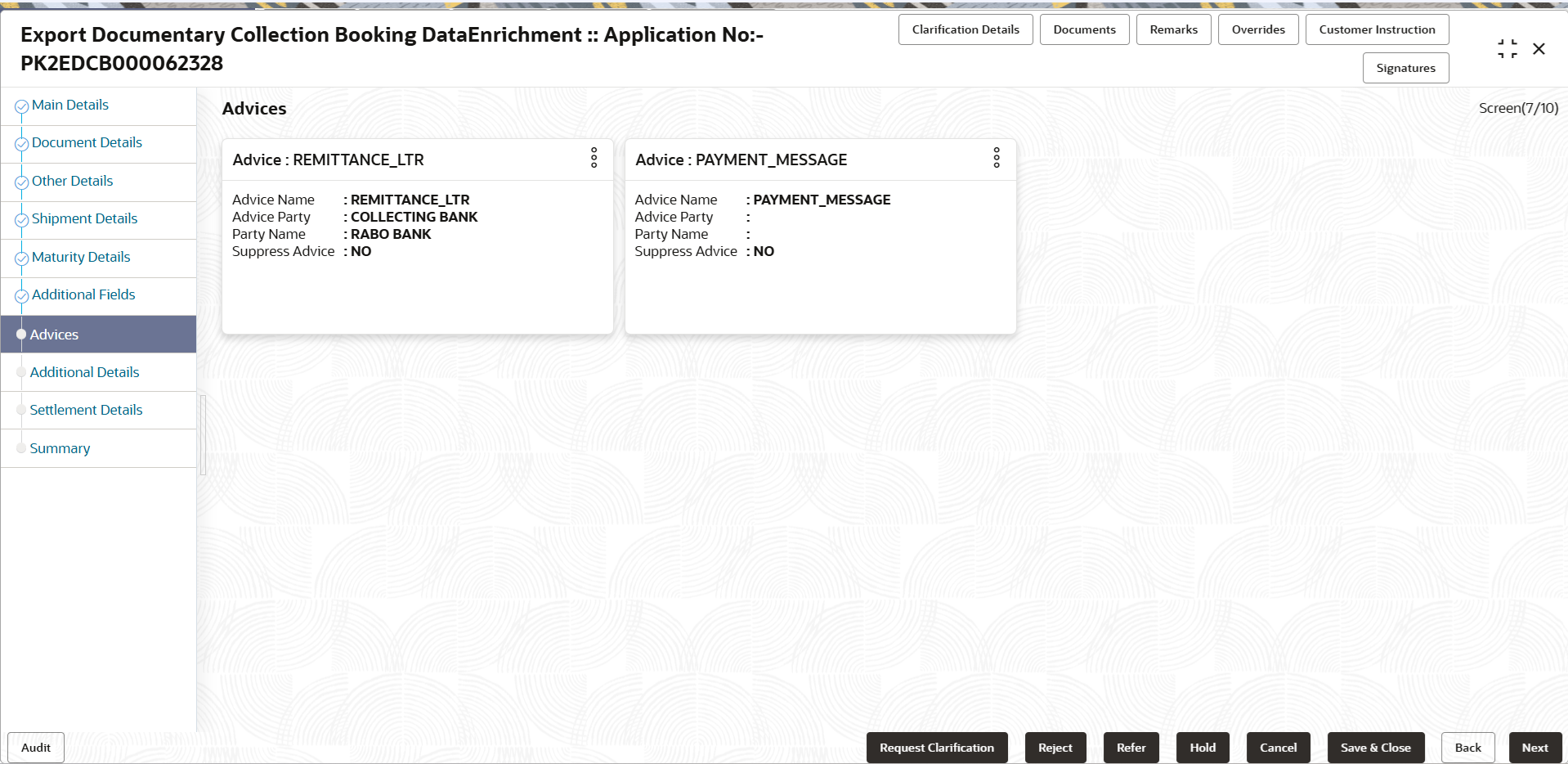 Advice Name This field diaplays the advice name defaulted from LC issuance. Medium This field diaplays the medium of advices defaulted from the system. User can update if required.