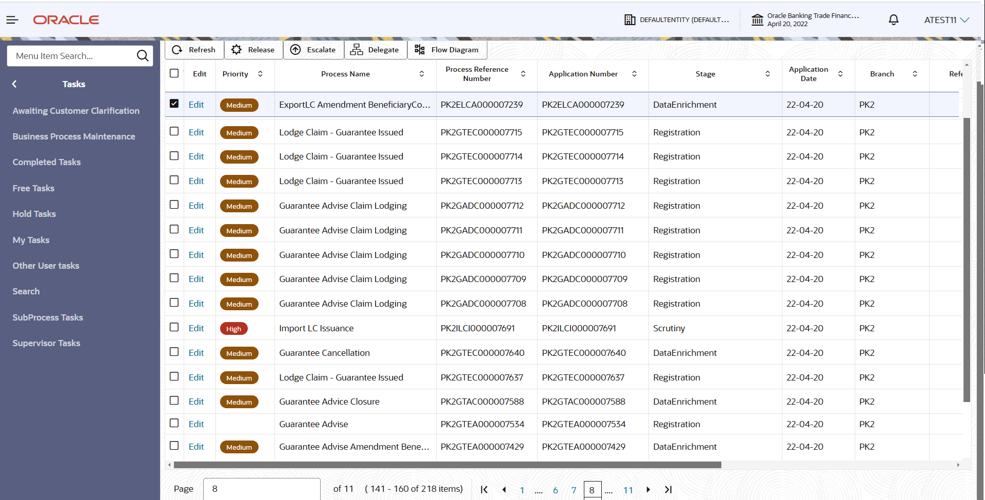 For expired line of limits, the task moves to “Limit Exception” stage under Free Tasks, on ‘Submit’ of DE Stage with the reason for exception as “Limit Expired”.Do the following steps to acquire a task which completed the registration and currently at Data enrichment stage.