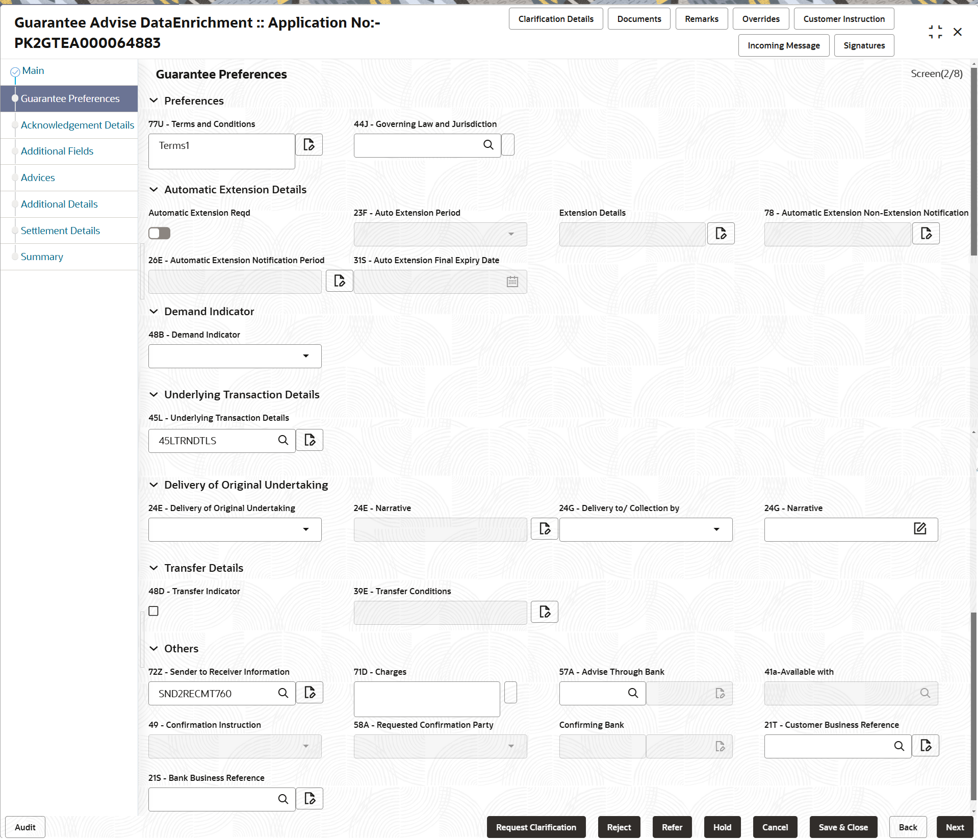 This topic provides the systematic instructions to capture the Guarantee preference details in Scrutiny tage.