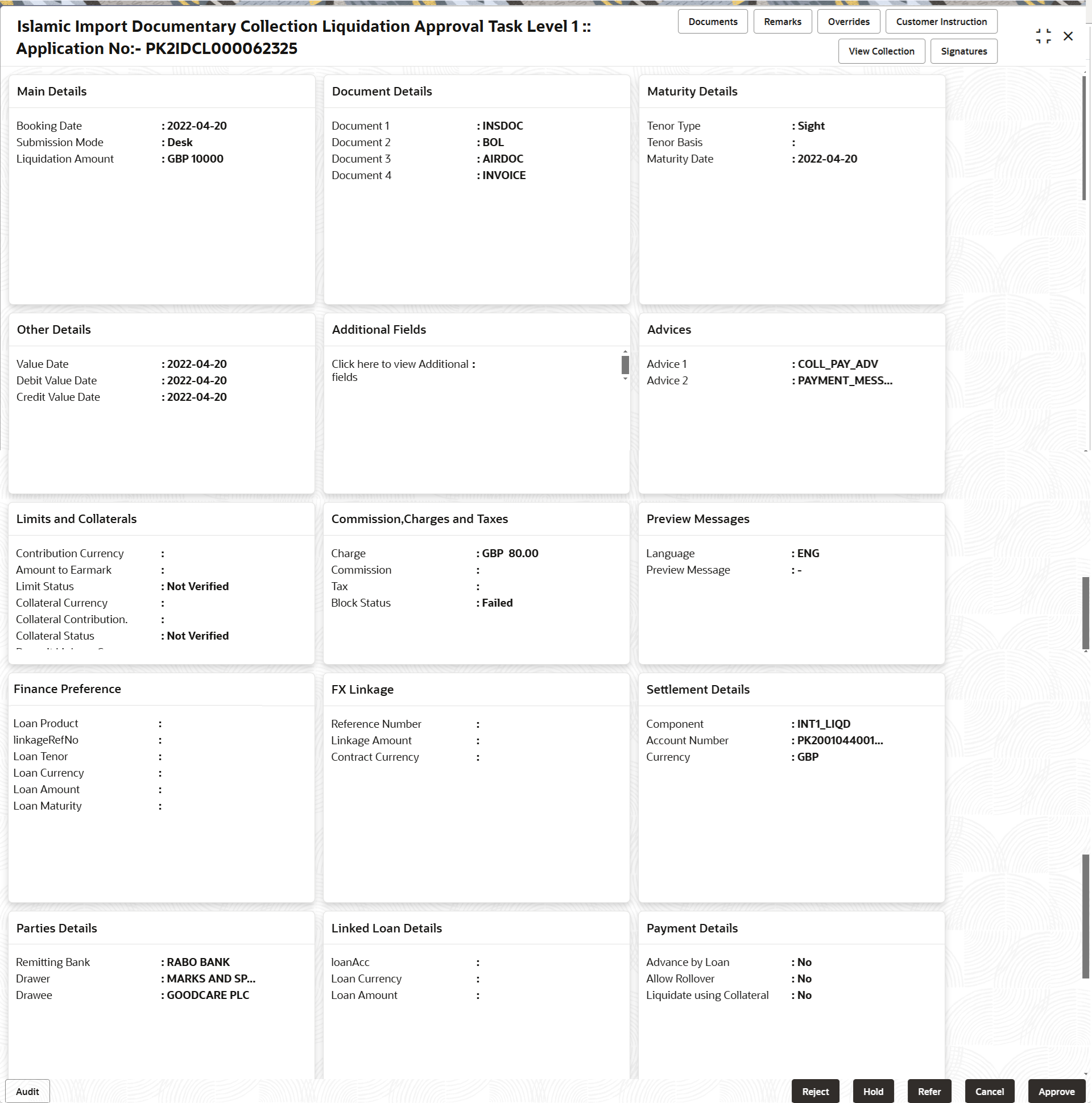 Parent topic: Import Documentary Collection Liquidation - Islamic