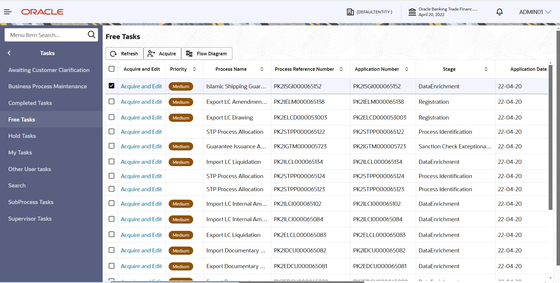 For expired line of limits, the task moves to “Limit Exception” stage under Free Tasks, on ‘Submit’ of DE Stage with the reason for exception as “Limit Expired”.Do the following steps to acquire a task currently at Data Enrichment stage: