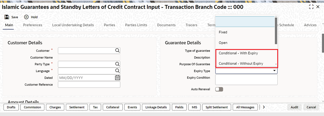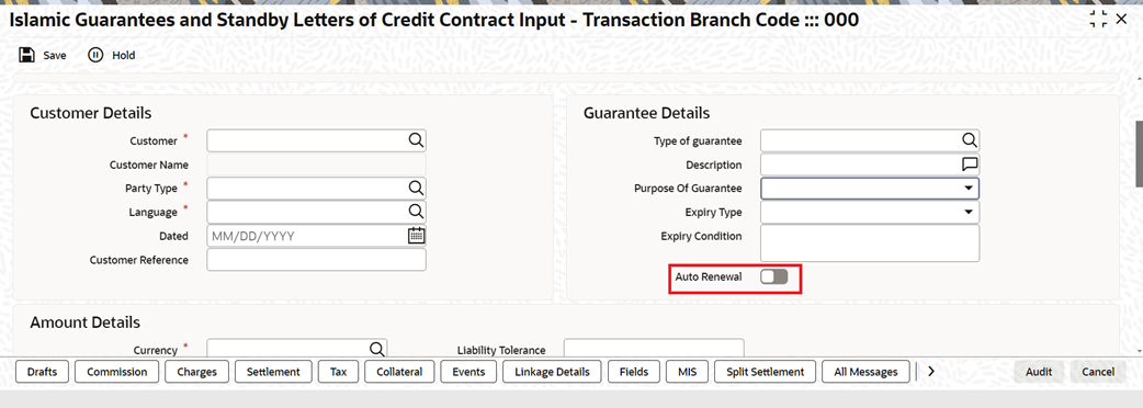 Islamic Guarantees and Standby Letters of Credit Contract Input (LIDGUONL)