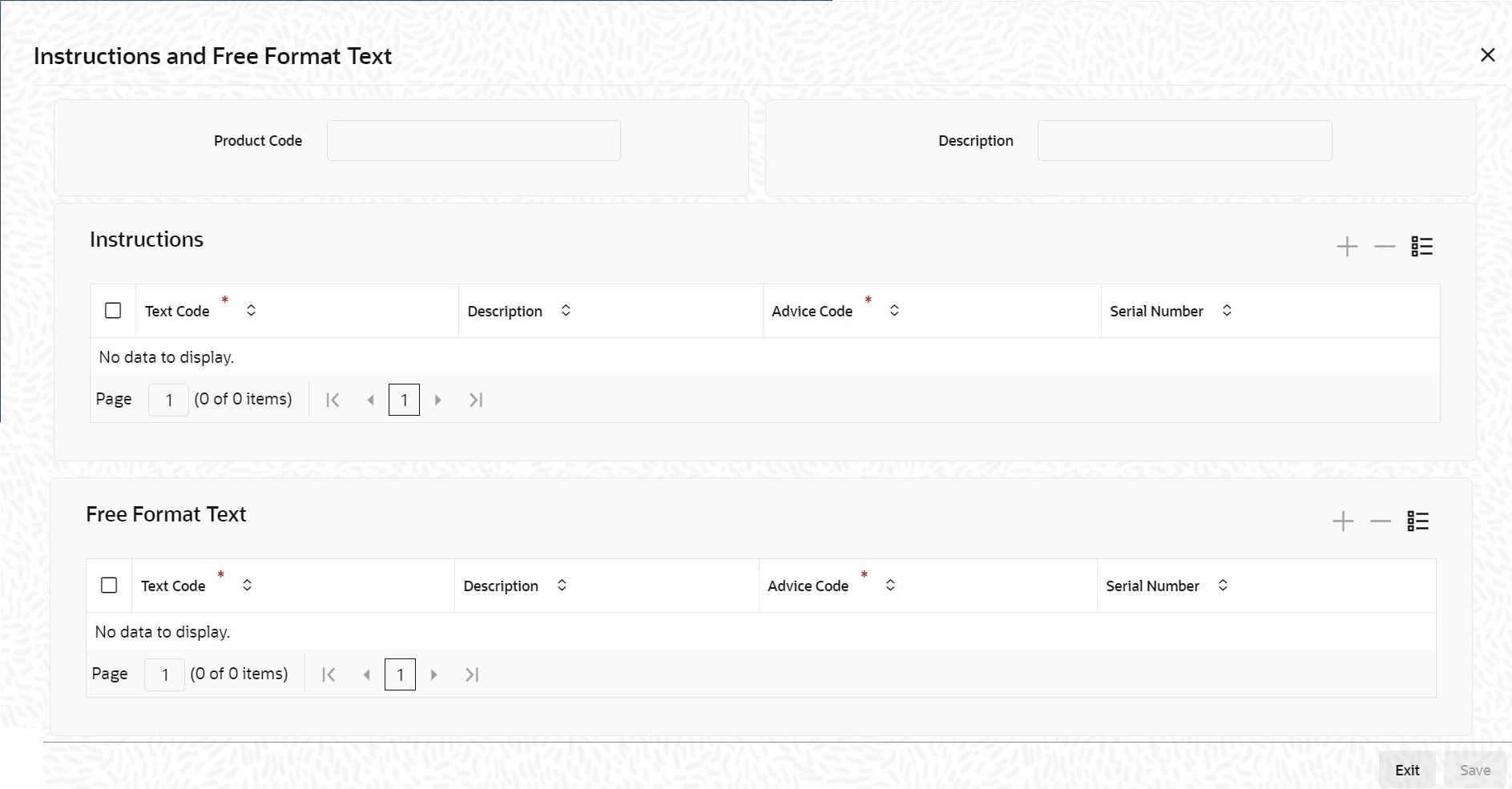 Text Code A list of the standard instructions that can accompany the bill is maintained in the ‘Instructions Codes Maintenance’ screen. Select an Instruction code from the list of instructions maintained earlier. More than one of the predefined Instructions made applicable to the product you are creating. The instructions, including the other details that you define for it, will be defaulted to all bill contracts, involving this product.