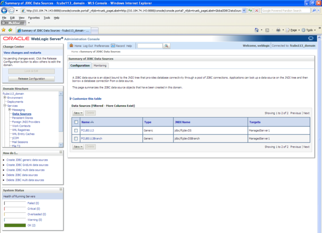 Description of the illustration picture29.png - FCUBSDS’ datasource is created.