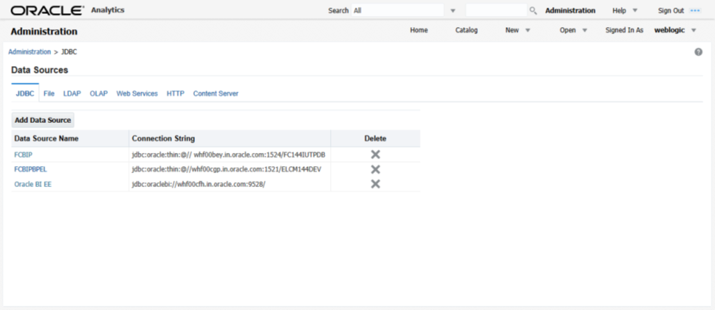 - Go to Oracle Analytics Server Web Server’s Administration Console. Specify the
