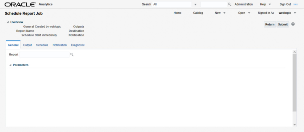 Description of the illustration picture13.png - Click on Output Tab. The options will get defaulted from the report