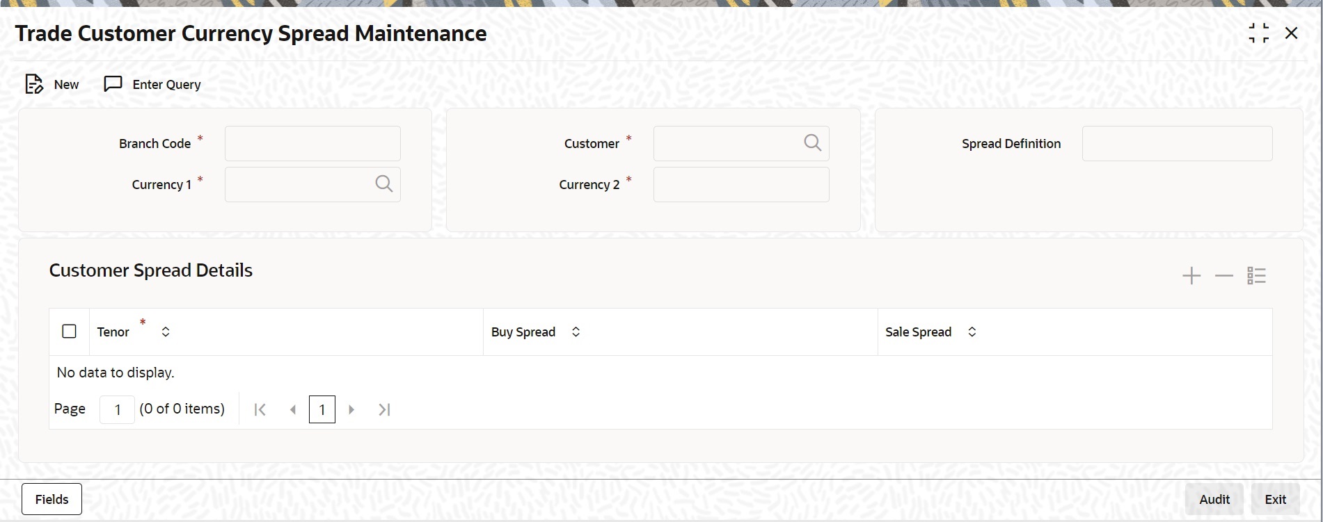 Figure 1-11 Trade Customer Currency Spread Maintenance