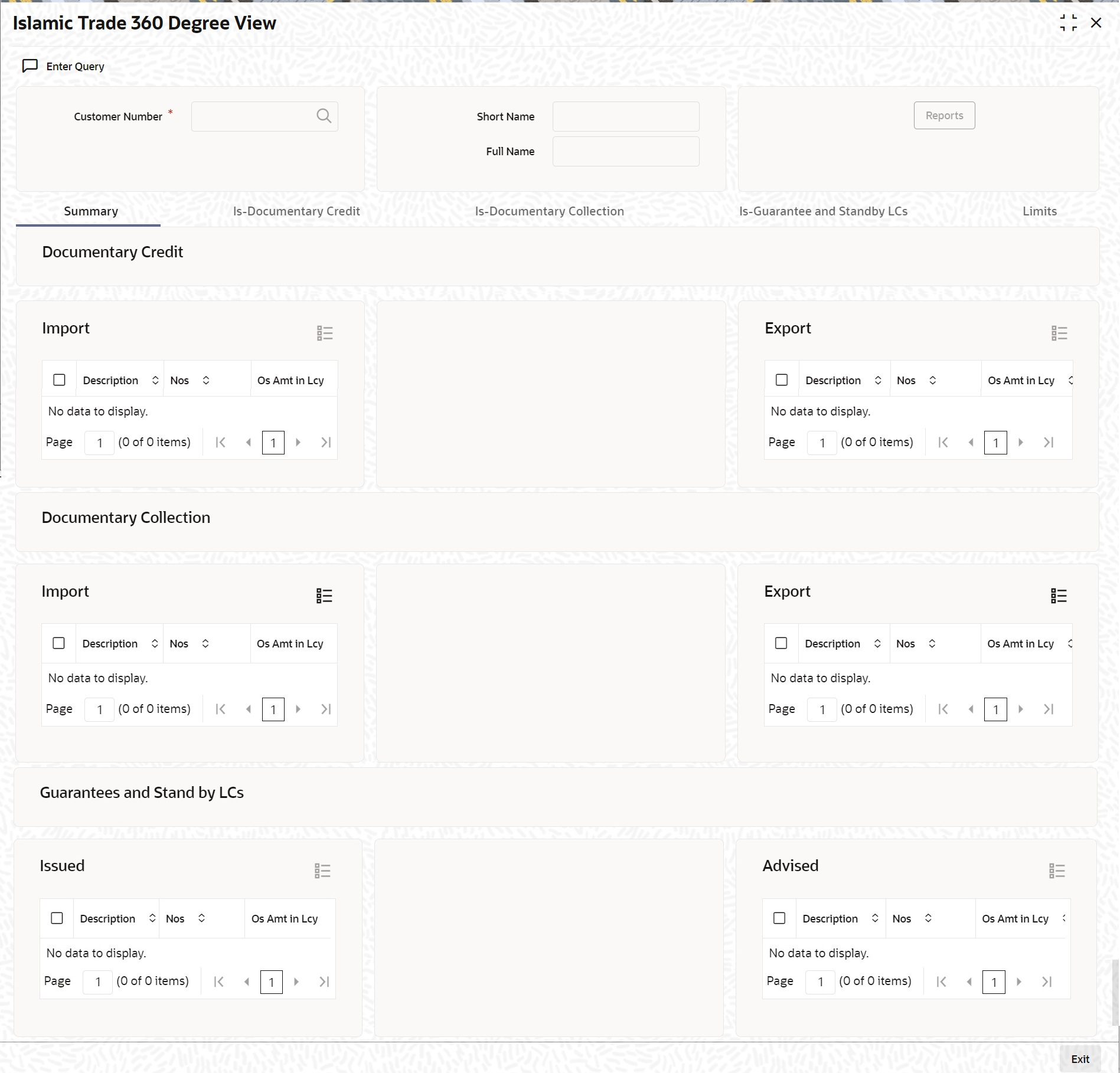 2. On Islamic Trade 360 Degree, specify the Customer Number. For more information on fields,