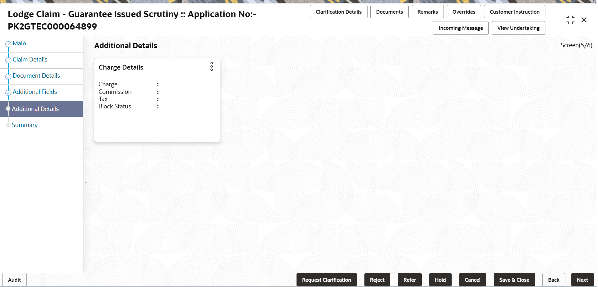 This topic provides the systematic instructions to capture the additional details in Scrutiny stage of Lodge Claim Guarantee Issued process.
