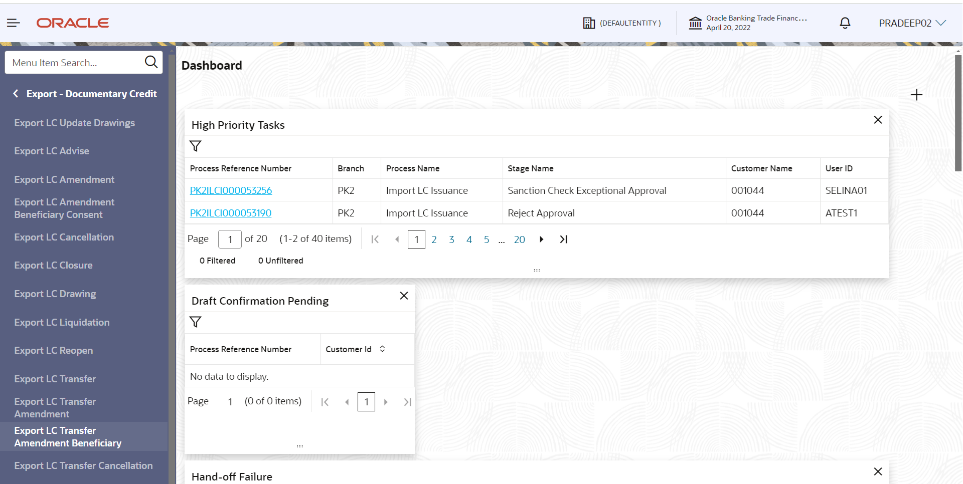 - Click Submit.The task will move to next logical stage of Export LC Transfer Amendment Beneficiary Consent.
