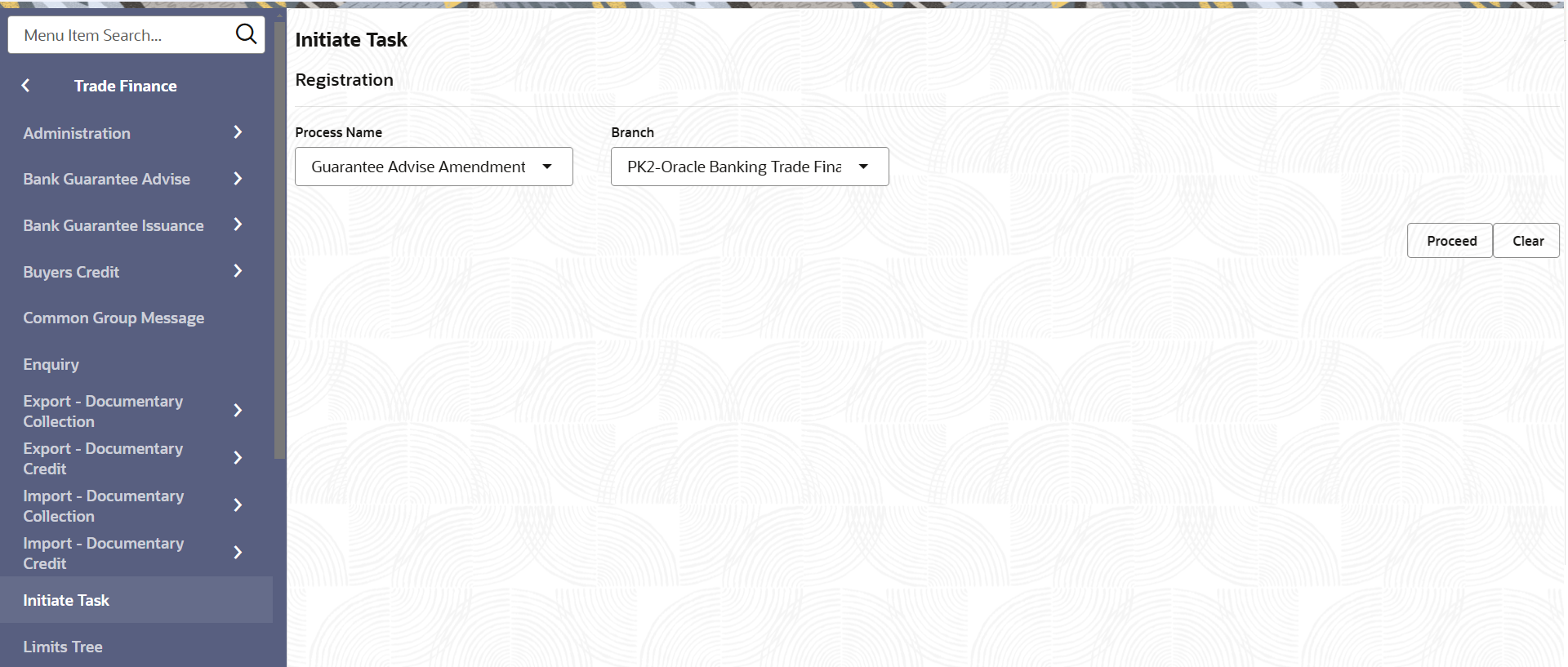 1. On Home screen, click Trade Finance. Under Trade Finance, click Initiate Task.