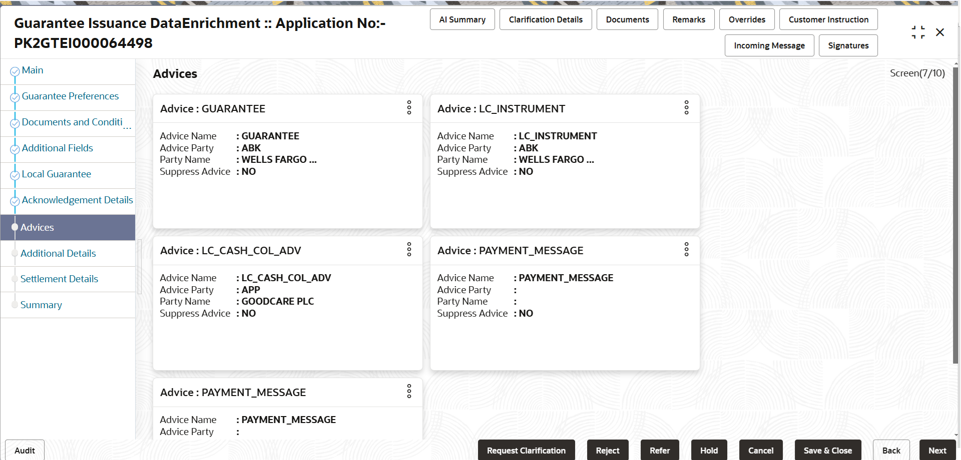 Description of the illustration advicedetails.pngFor more information on fields, refer to the field description table below.