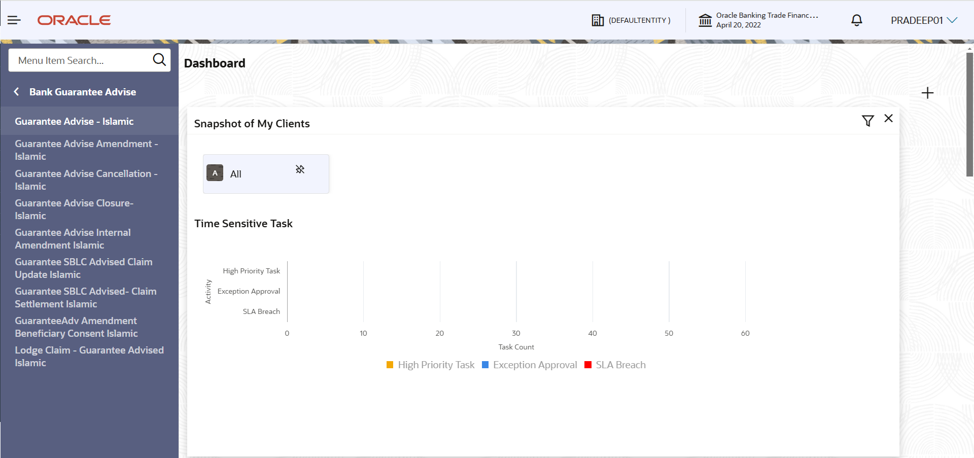 - On Home screen, click Trade Finance Islamic. Under Trade Finance Islamic, click Bank Guarantee Advise.