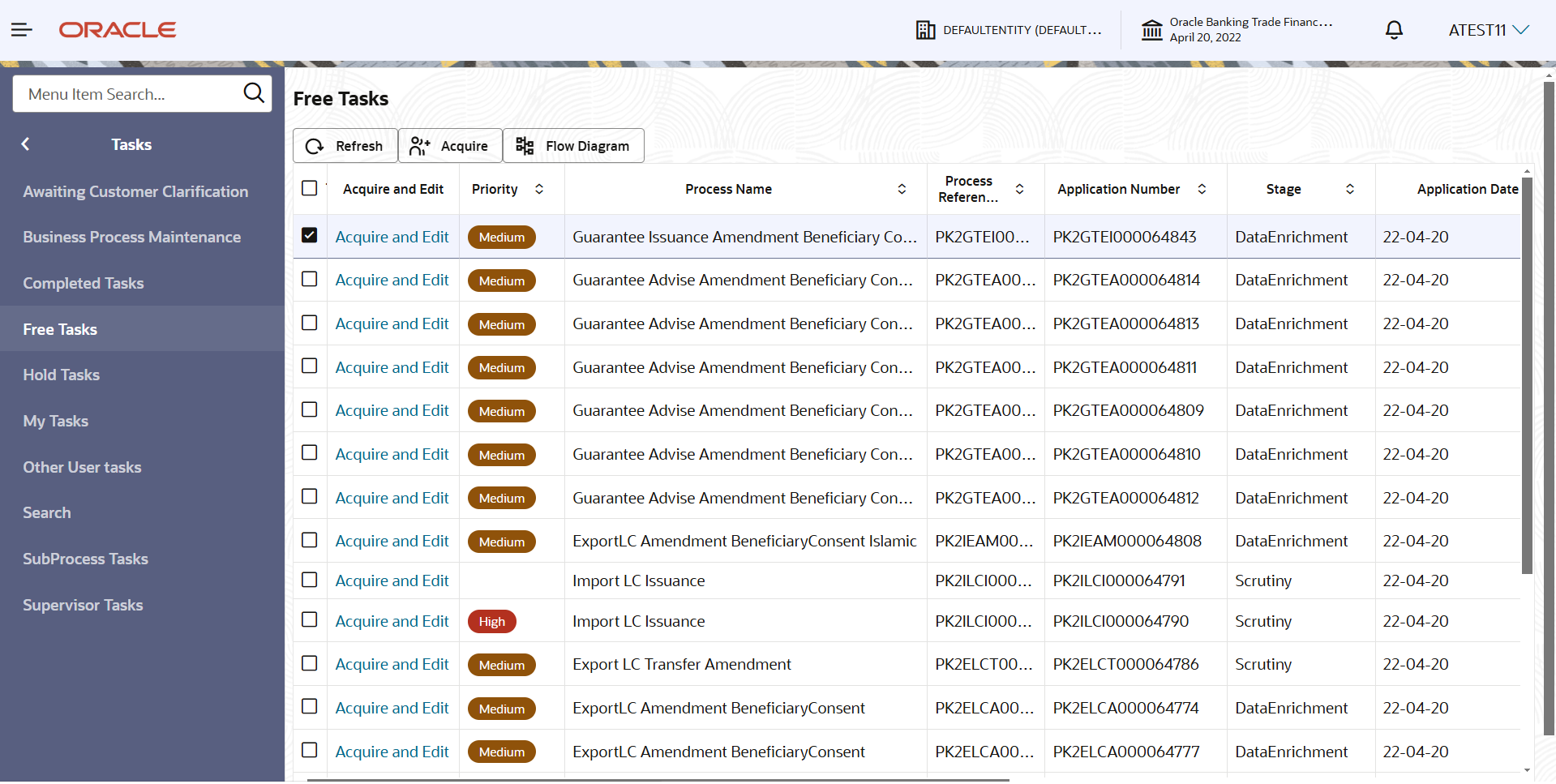 For expired line of limits, the task moves to “Limit Exception” stage under Free Tasks, on ‘Submit’ of DE Stage with the reason for exception as “Limit Expired”.Do the following steps to acquire a task which completed the registration and currently at Data enrichment stage.