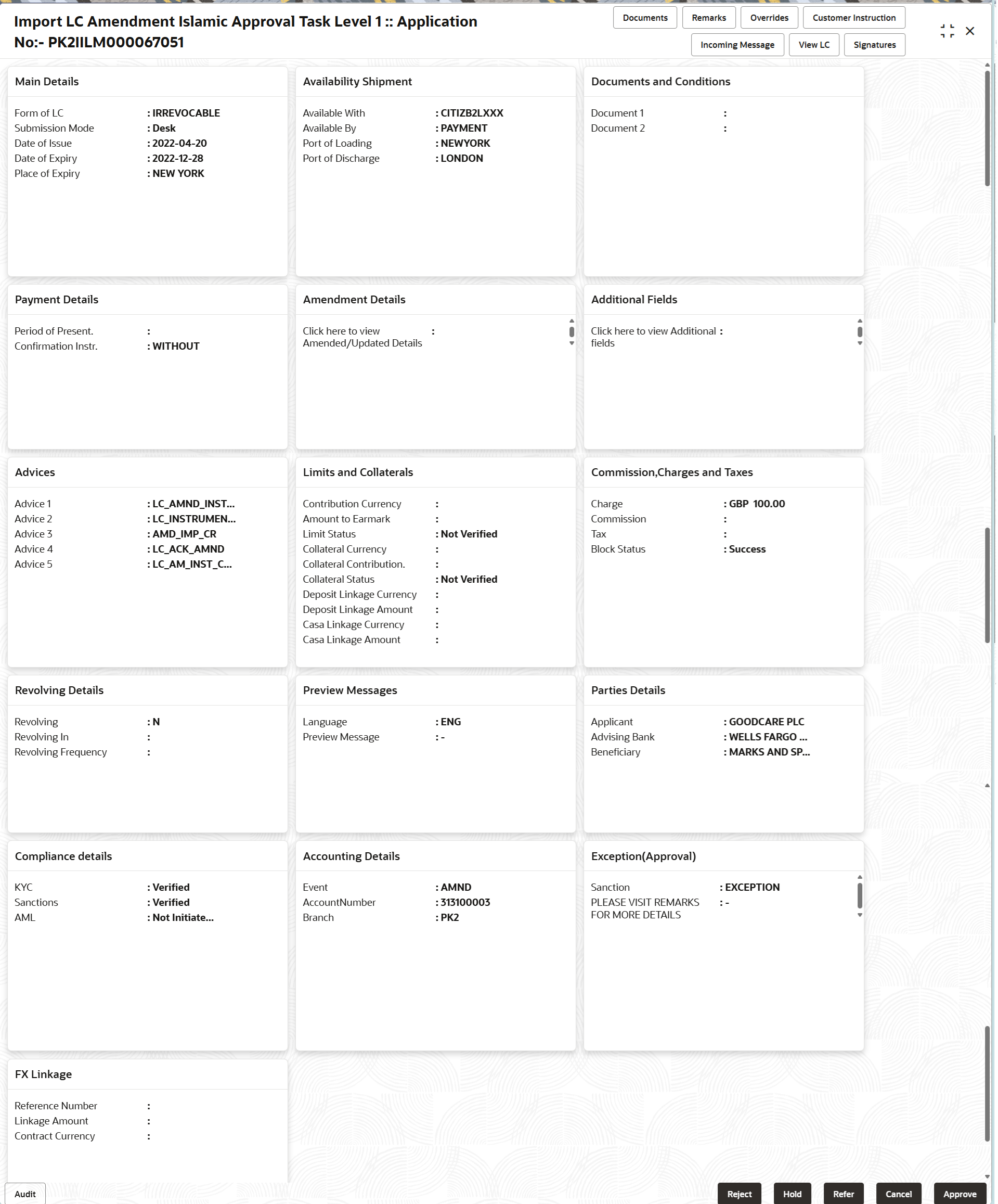 - Parties Details - User can view and modify party details like beneficiary, advising bank etc., if required