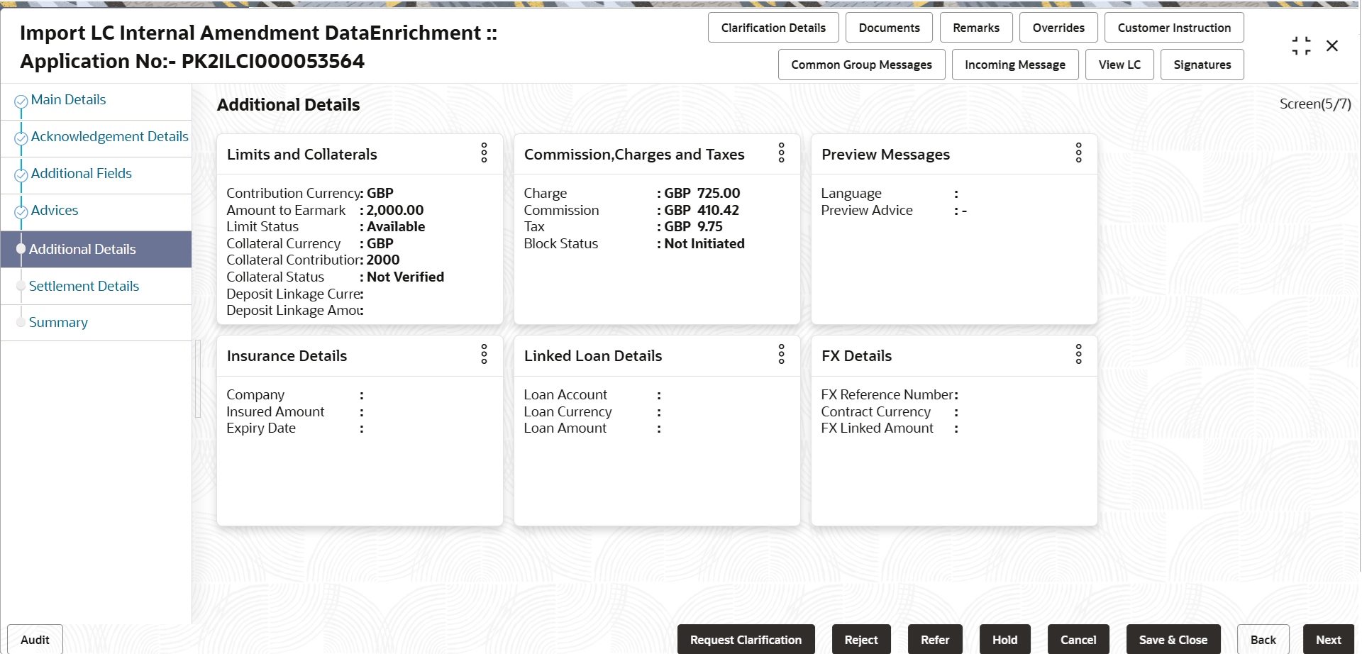- If any LC Amendment is pending for beneficiary confirmation with FX changes, then the system, will not allow another amendment on this contract further.