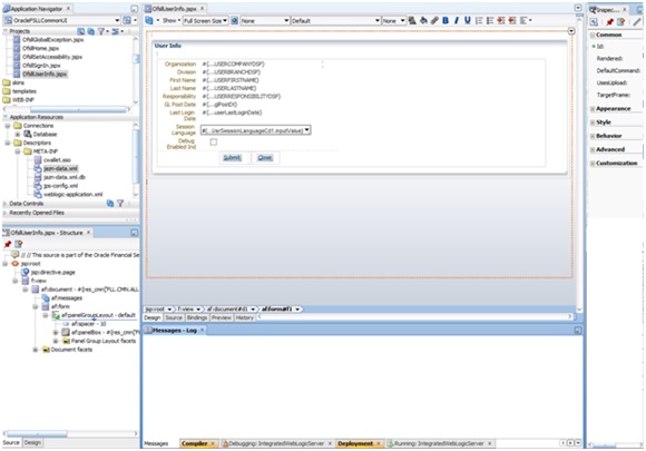 - JSPX pages and page fragments: The view layer of the application consists of a small number of pages per application. These pages then contain task flows, which in turn contain a number of page fragments.