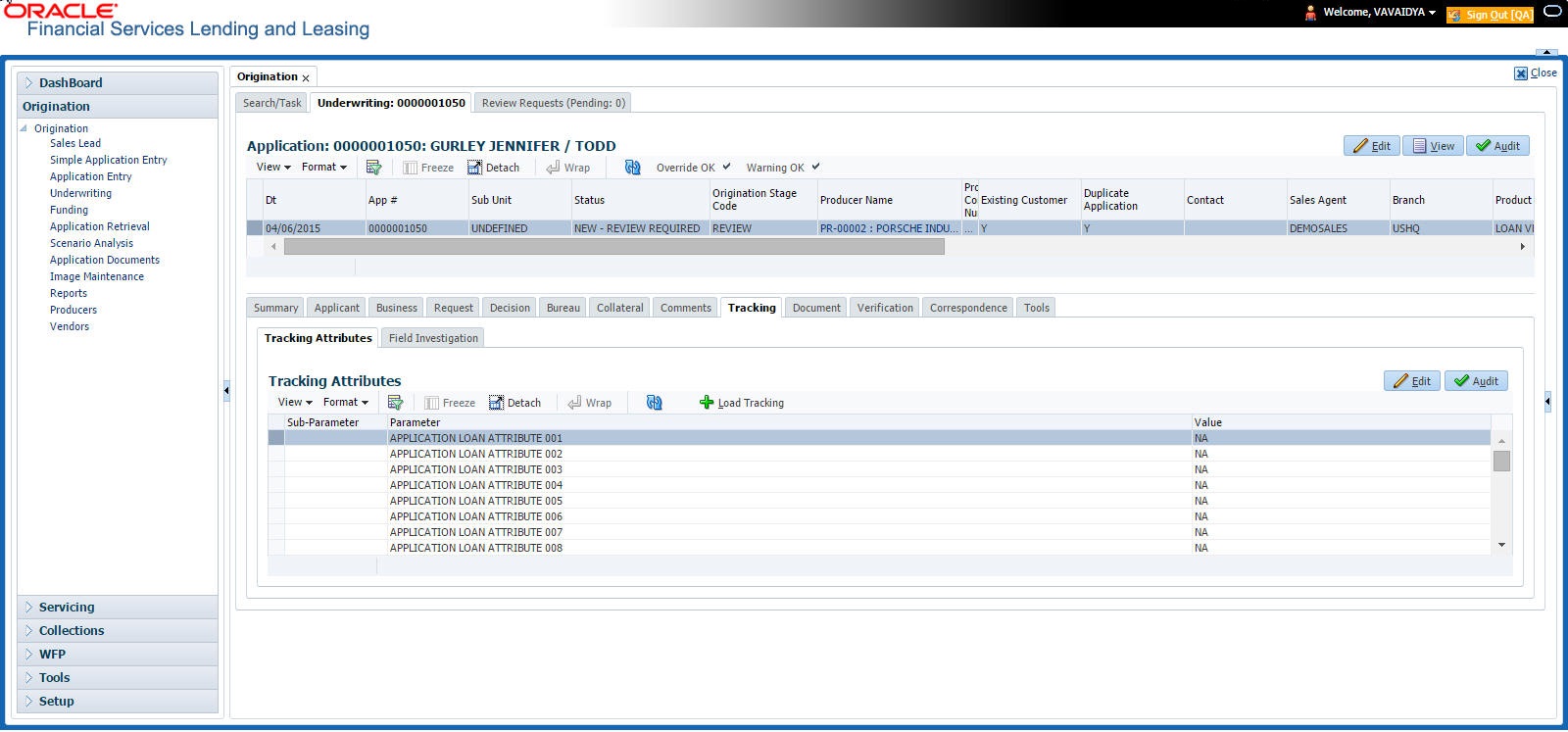 When using the Underwriting screen, you can add tracking attribute information to an application at any time in the underwriting process by using the Tracking Attributes screen.