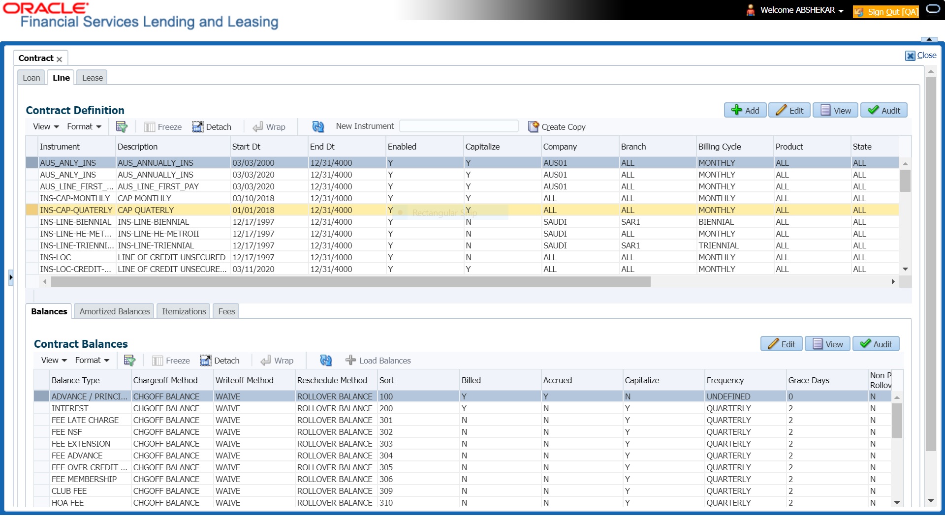 - Based on Balance Frequency to define different capitalization frequency for each balance. This can further be defined in Balances sub tab.