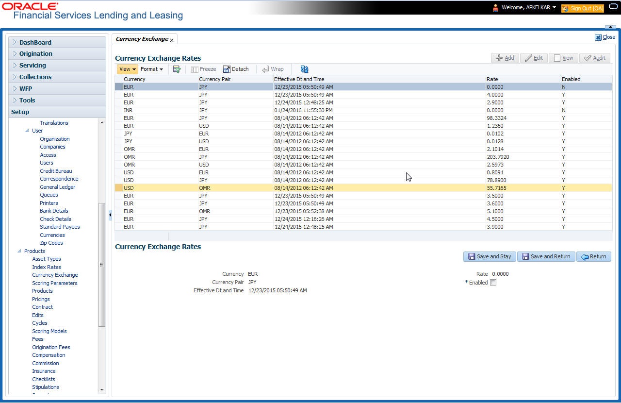 - In the Currency Exchange Rates section, perform any of the Basic Operations mentioned in Navigation chapter.