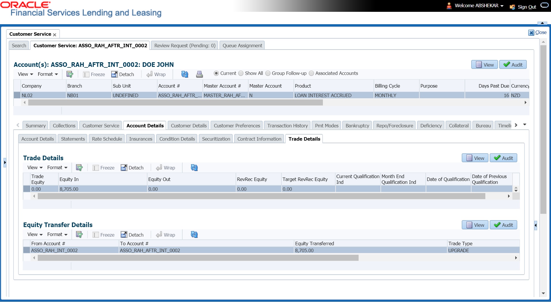 Details > Trade Details sub tab. This tab displays Equity Transfer Details from