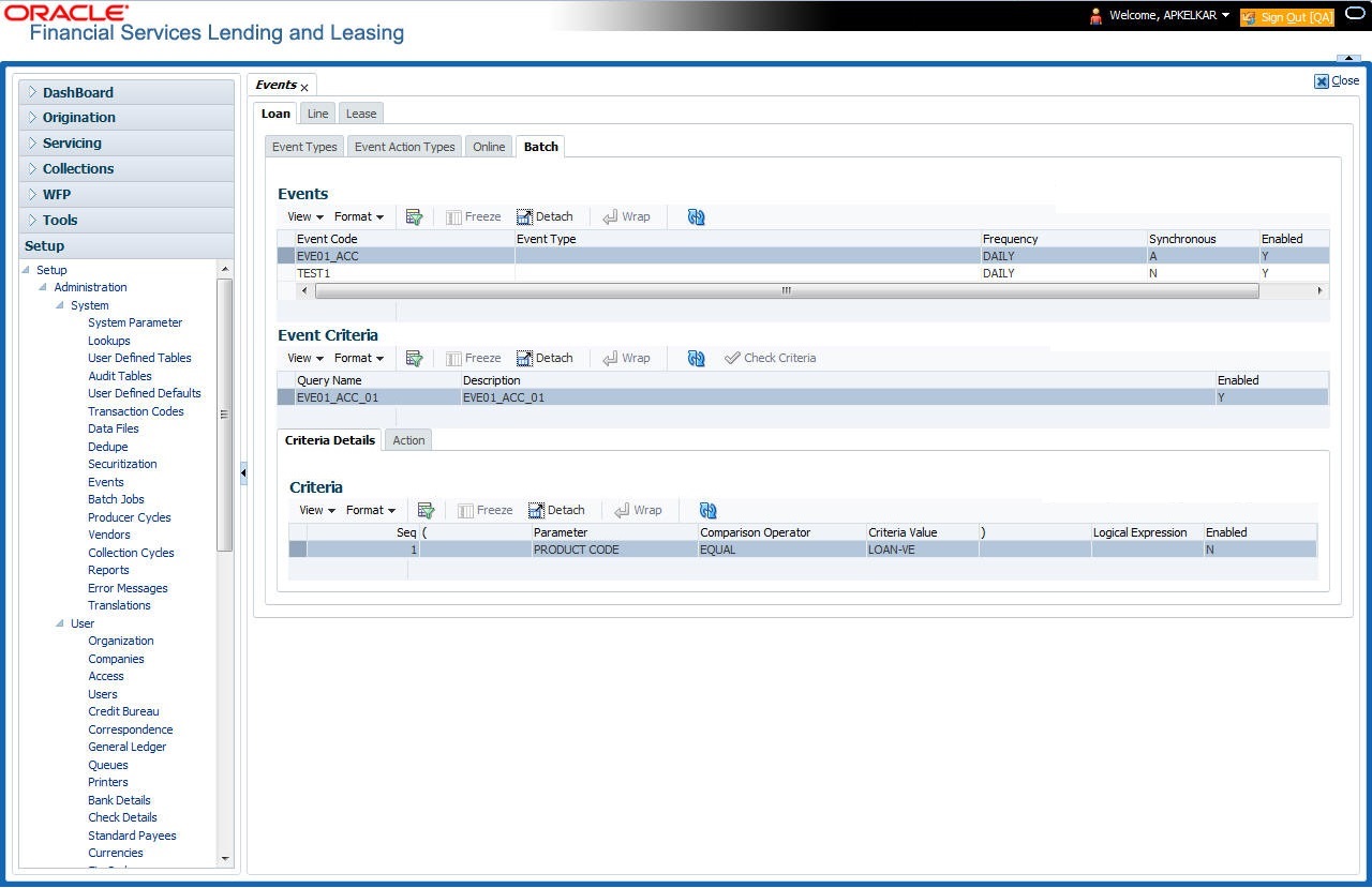 Click Setup > Setup > Administration > System > Events > Loan > Batch.