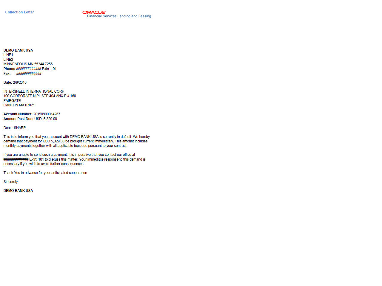 Figure 4-16 Customer Service - Letters - Collection Letter 2