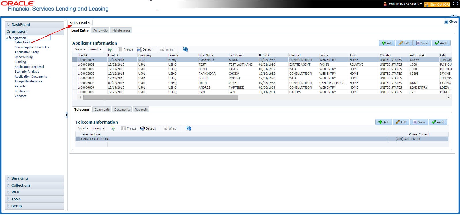 Having this option enabled you can view and update a maximum of 15 Applications in parallel tabs and Oracle Financial Services Lending and Leasing renders dynamic data across all the opened tabs.